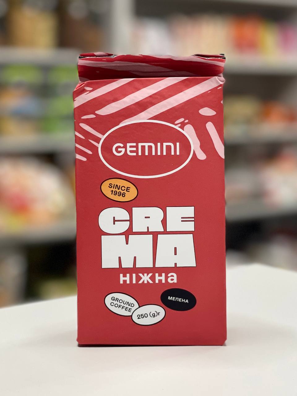 Кава мелена Gemini Crema Ніжна 100% арабіка 250 г — ароматна мелена кава для щоденного використання, виготовлена зі 100% арабіки, яка дарує м’який, ніжний смак і багатий аромат натуральної кави.