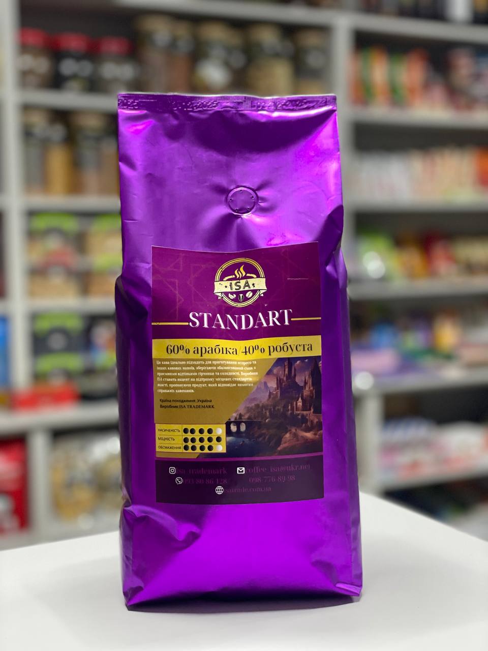 Кава в зернах Isa Standart 60% арабіка / 40% робуста  1кг— це збалансована зернова кава для щоденного використання, яка поєднує м’якість арабіки та насиченість робусти.