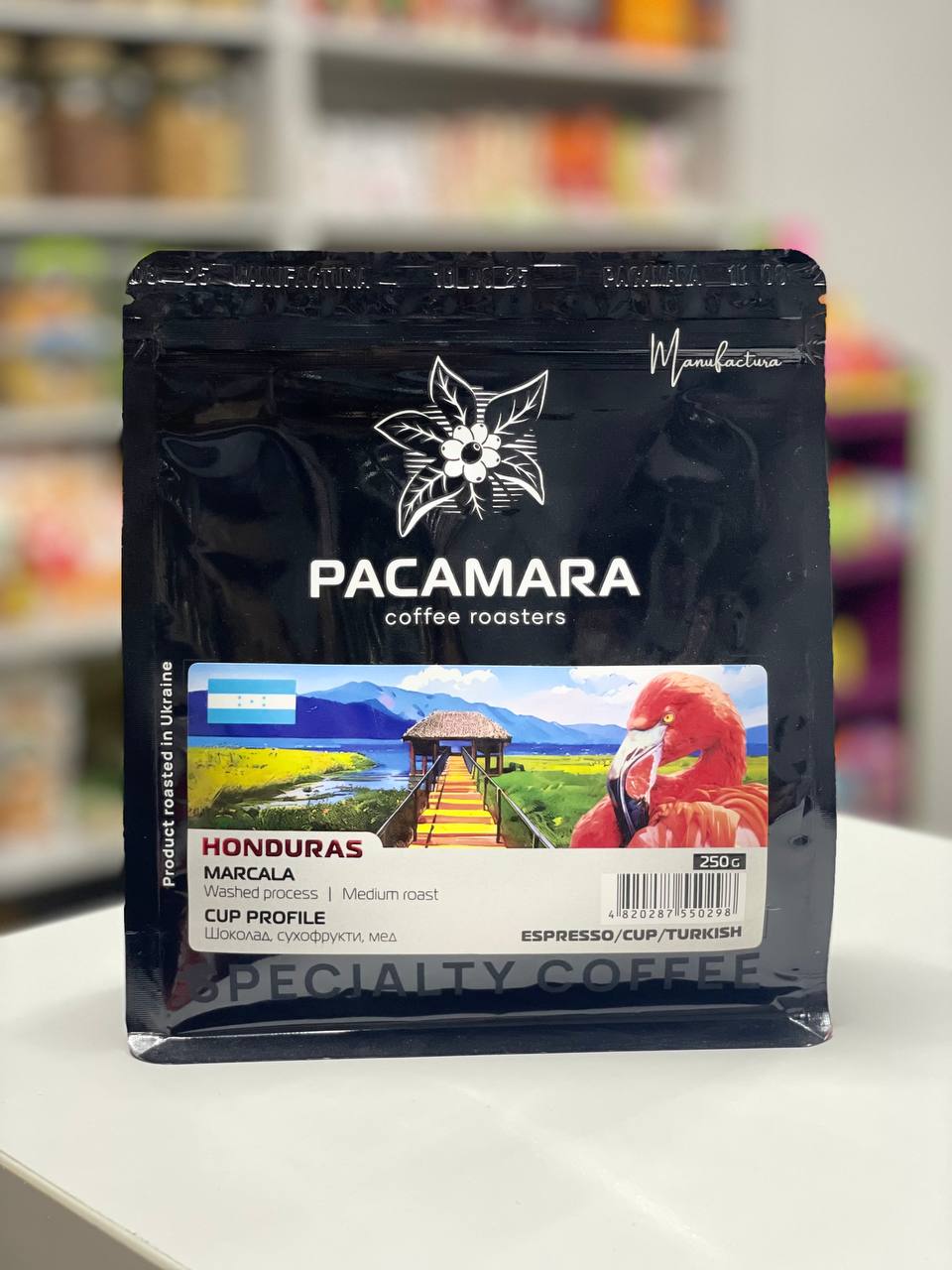 Кава в зернах Pacamara Honduras 100% арабіка 250 г — це преміальна зернова кава для щоденного використання, яка вирізняється ніжним, збалансованим смаком та витонченим ароматом високоякісної арабіки з Гондурасу.