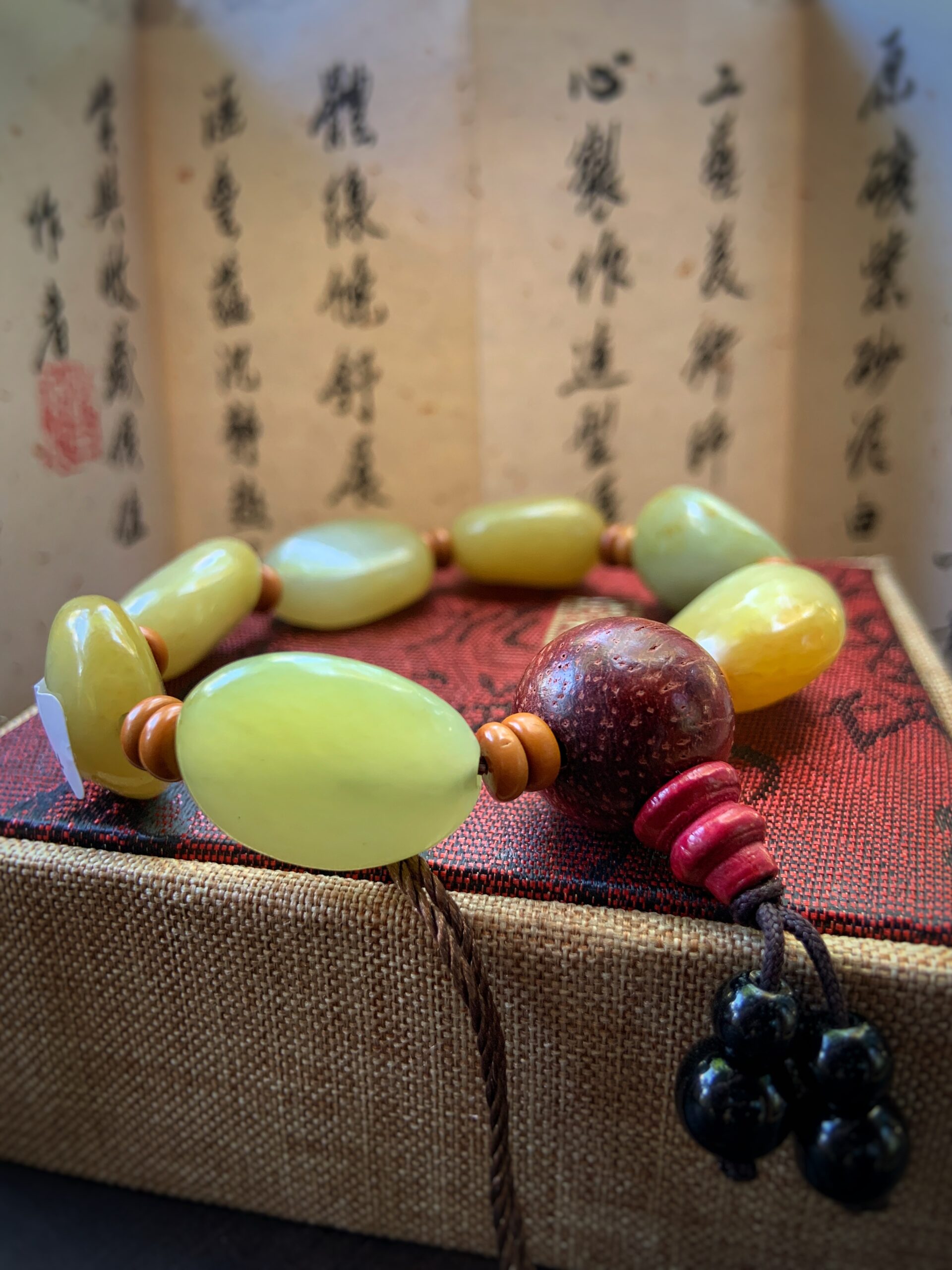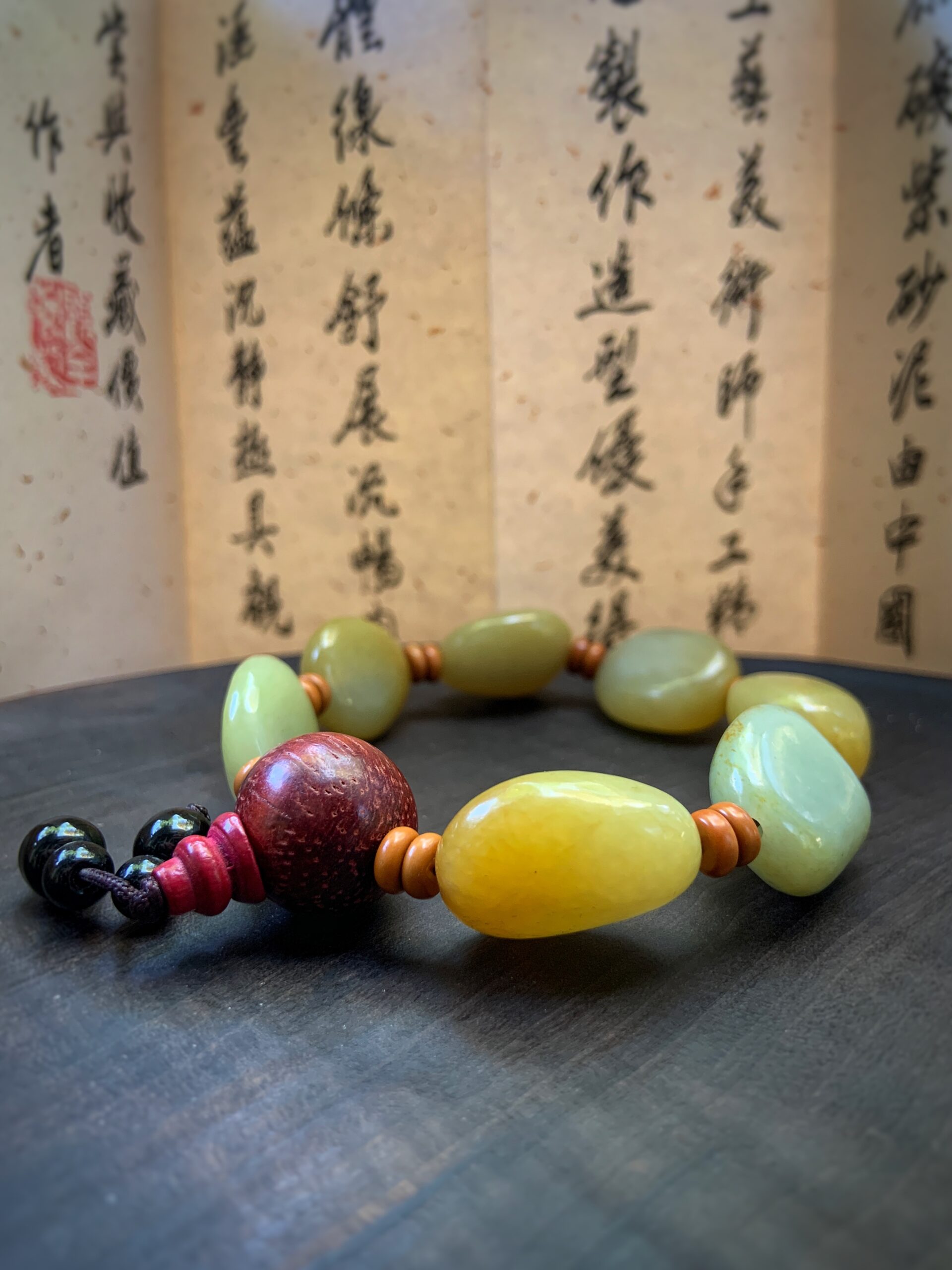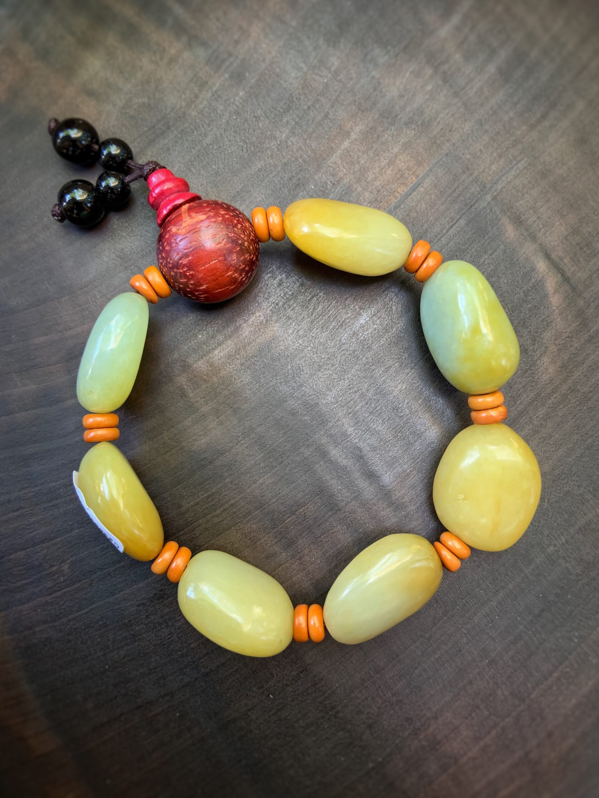 Нефритовий браслет з сандаловою бусіной № 10  Нефритовий браслет з сандаловою бусіной № 10
