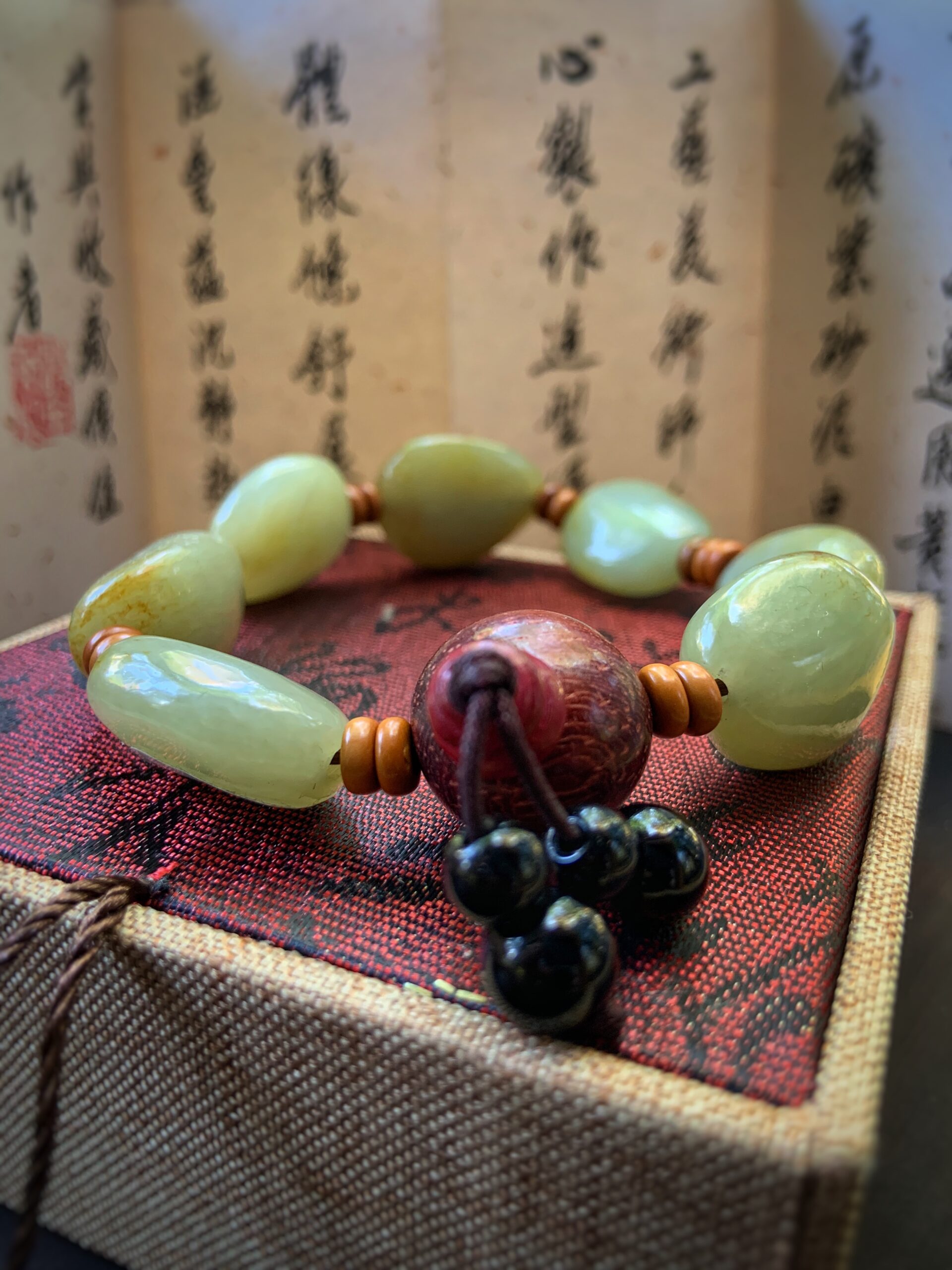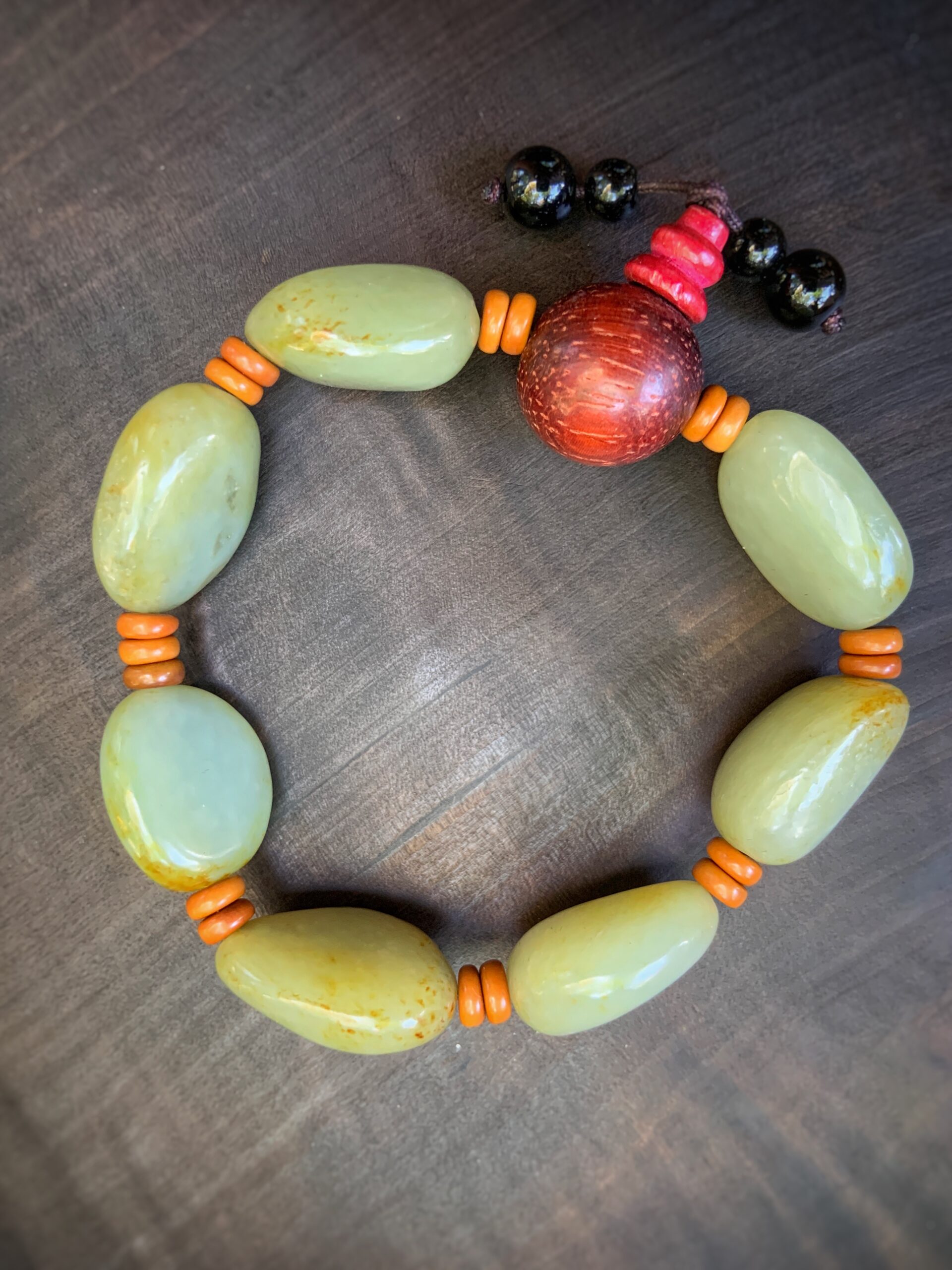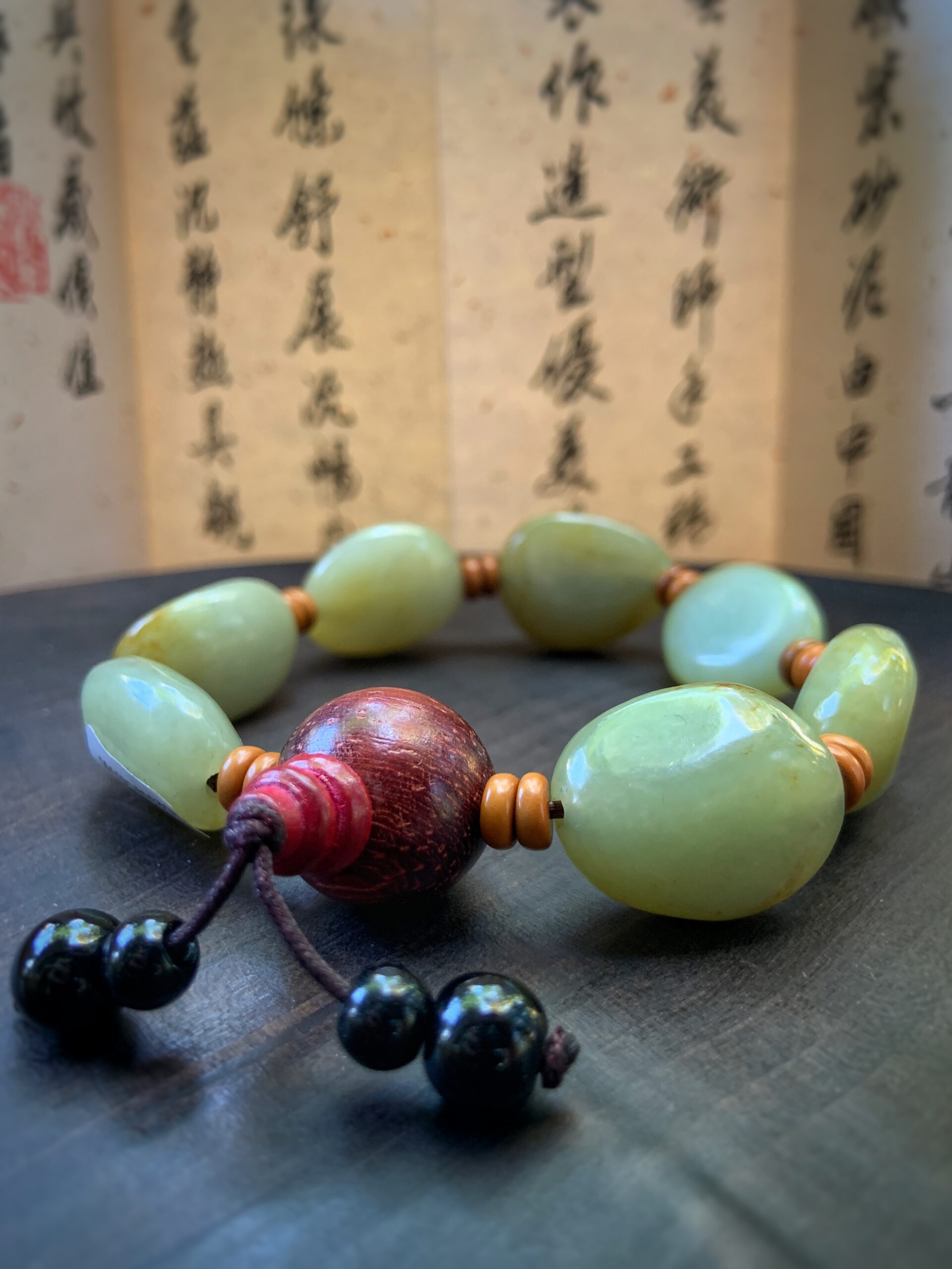 Нефритовий браслет з сандаловою бусіной № 9  Нефритовий браслет з сандаловою бусіной № 9